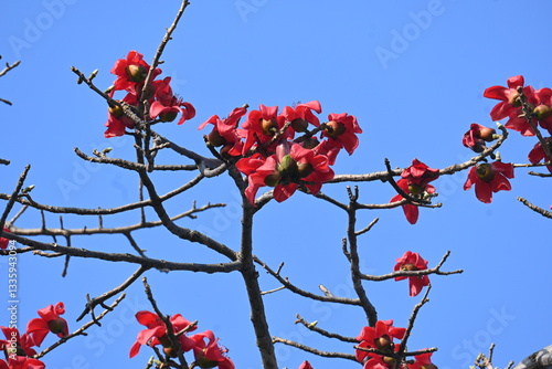 Bombax ceiba tree flower. Its common names cotton tree, Malabar silk cotton tree, red silk cotton, red cotton tree, silk cotton tree and kapok.