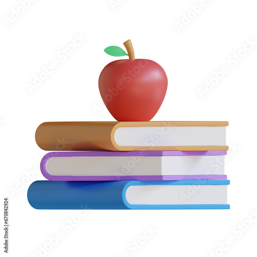 Book and Apple in an Attractive 3D Model. 3D Model of Book and Apple for a Relaxing Atmosphere. 3d illustration, 3d element, 3d rendering. 3d visualization isolated on a transparent background