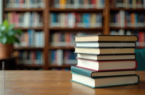 Book stack in the library room and bookshelf for , back to school concept