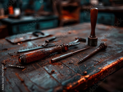 Bookbinding tools on a rustic table, intricate and traditional, Artisan, Soft tones, Photograph, Handcrafted books