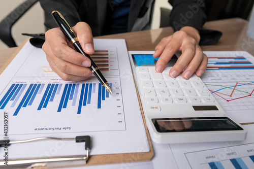 bookkeeper or financial inspector hands making report, calculating or checking balance. Home finances, investment, economy, saving money or insurance concept