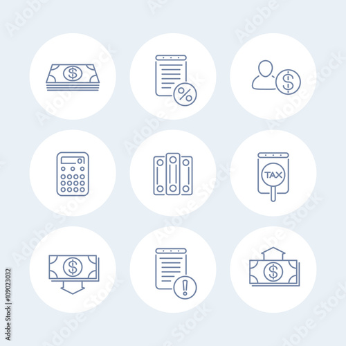 Bookkeeping line icons, finance, tax, accounting round isolated icons, vector illustration