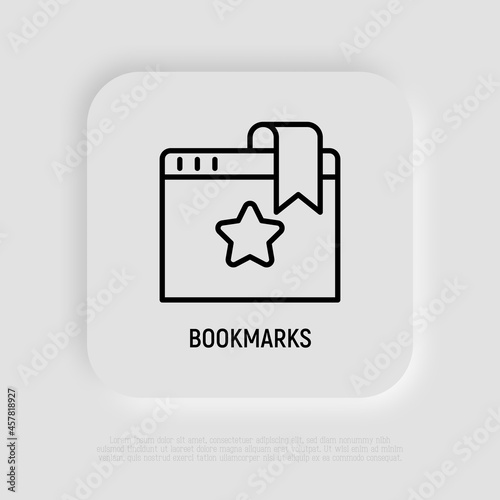 Bookmark on web page thin line icon. Modern vector illustration for favorite web site.