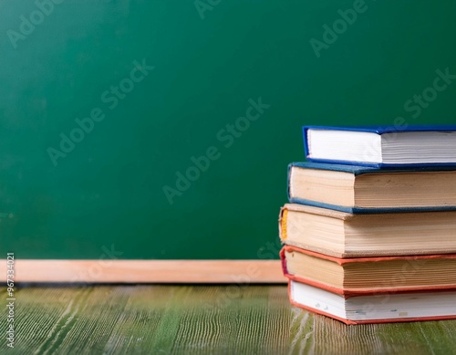 Books and a chalkboard representing the classroom and learning environment, symbolizing education, teaching, and academic growth.