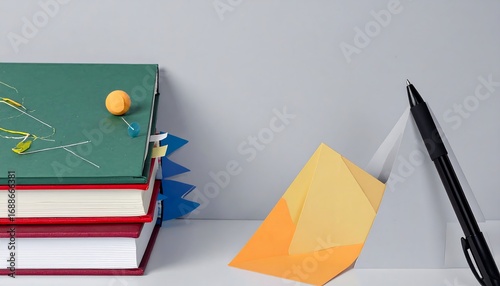 Books and Pens as Minimalist Geometric Paper Cut Style Shapes