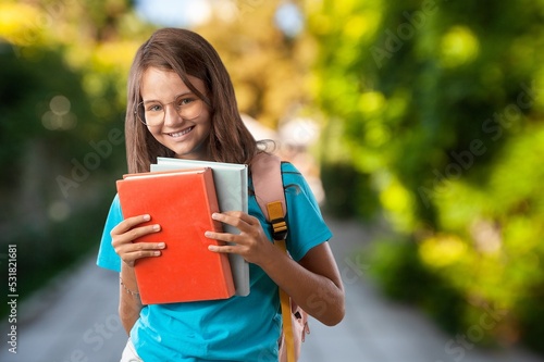 Books in hands of girl. Back to school concept.