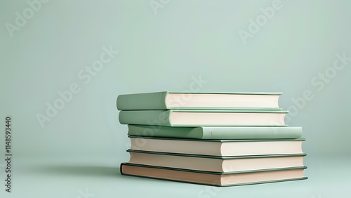 Books with plain covers stacked on a green backdrop. Attractive and organized book arrangement