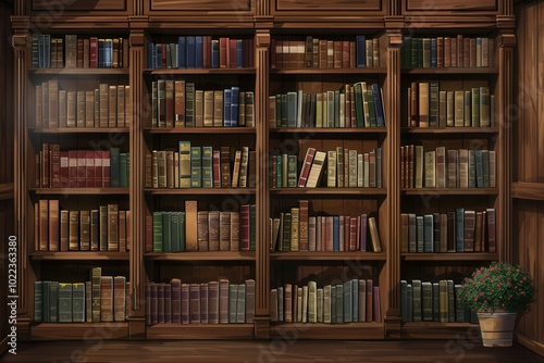 Bookshelves filled with diverse textbooks and literature create a warm learning atmosphere in the study room. Generative AI