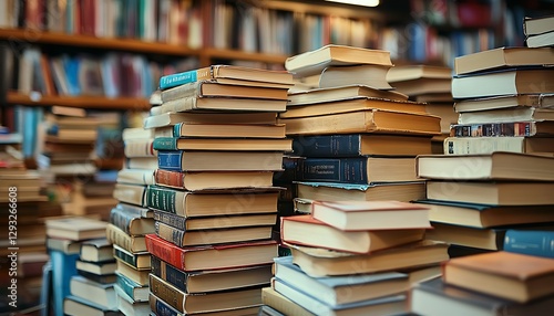 Bookstore stacks, books, shelves, reading, knowledge