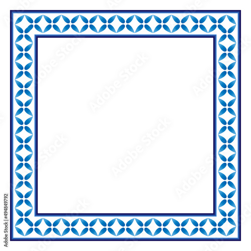 Border frame ceramic tile pattern. Islamic, indian, arabic motifs. Damask border square pattern. Porcelain ethnic bohemian background