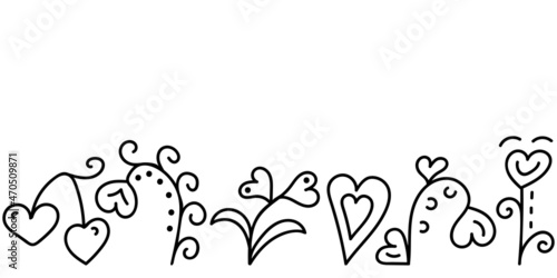 Border heart flowers, hand drawing, doodles for Valentine's Day, birthday and more