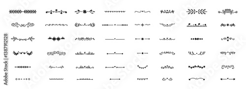 Borders set. Floral dividers, doodle style isolated decorative elements. Wedding cards, posters and banners design. Flowers leaves and ornament. Calligraphic underline. Curve separator, vector set