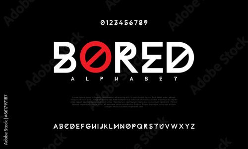 Bored creative modern urban alphabet font. Digital abstract moslem, futuristic, fashion, sport, minimal technology typography. Simple numeric vector illustration