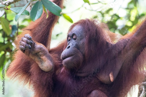 Borneo Orangutan at the Semenggoh Nature Reserve in Kuching, Sarawak State, Malaysia.
