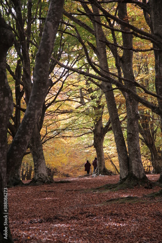 bosco in autunno con persone a passeggio