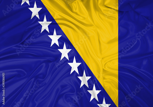 Bosnia Herzegovina national flag texture. Background for international concept. Simple waving flag.