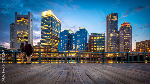 Boston in Massachusetts, USA at Boston Harbor and Financial District.
