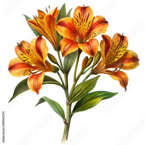botanica watercolor illustration red alstroemeri isolated on transparent background