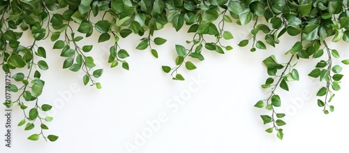 Botanical design featuring green foliage leaves framing a blank white space for text, top-down perspective, ideal for nature-themed backgrounds.
