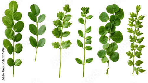 Botanical diversity showcased with fresh green leaves of varied species on a Transparent Background