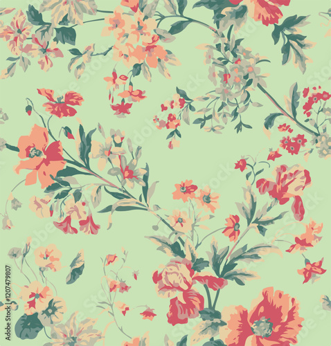 botanical floral vector seamless pattern with roses herbs and leaves big set background with flowers