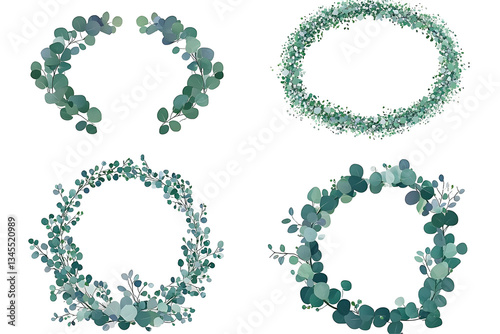 Botanical Illustration of Green Eucalyptus Wreath with Transparent Background for Decoration and Design Floral Leaves Circle Plant Frame Elements