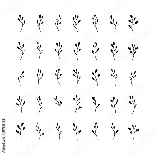 Botanical Leaves Variety Set. A versatile collection of hand-drawn leaves in different shapes and sizes, ideal for decorative designs, eco-projects, and modern branding.