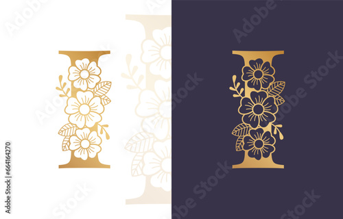 Botanical Letter I Monogram, Floral Alphabet Logo Design