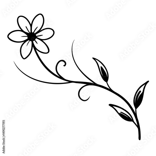 Botanical Line Drawing – Simple Flower and Leaf Illustration