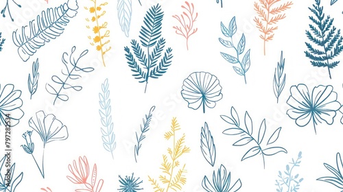 Botanical nature leaf and flower pattern vintage style background illustration design.