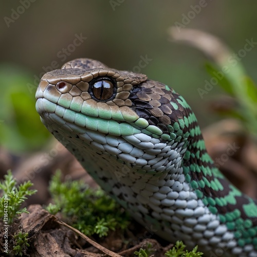 Bothriechis Marchi Interacting with Its Environment Coiled Near a Small Mammal or Bird