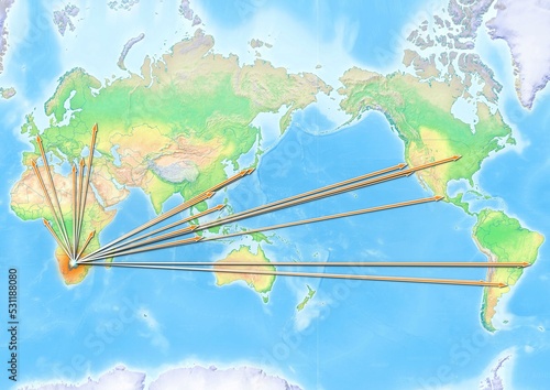 Botswana concept map centerd on Asia Pacific, export concept map for Botswana on white background suitable for export concepts. File is suitable for digital editing and large size prints.