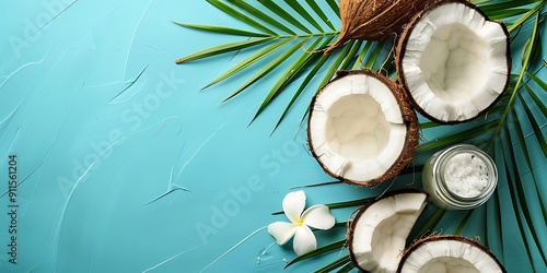 Bottle of organic coconut cooking oil on wooden table, closeup