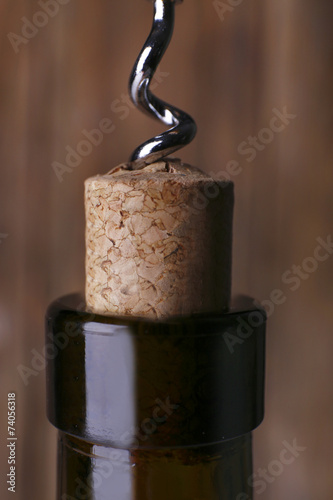Bottle opener close-up, on wooden background