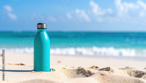 Bottle water beach blue insulated summer travel hydration tropical combines durable insulated design with sustainable, reusable materials ideal for clean ocean adventures and tropical relaxation.