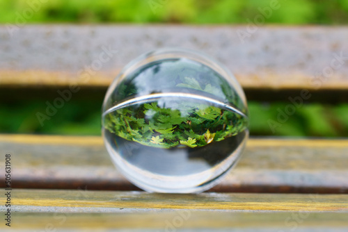 boule de verre sur banc public