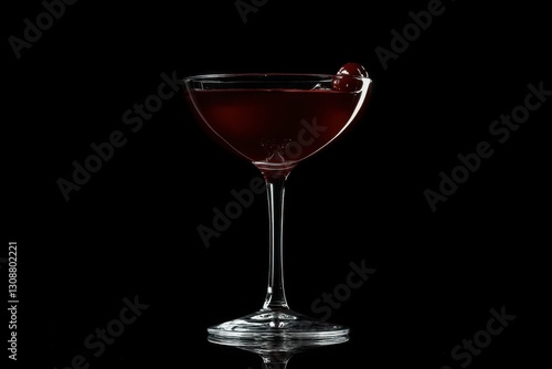 Boulevardier Cocktail. Classic Alcoholic Beverage with Red Berry Twist on Black Background