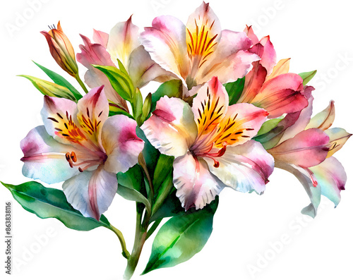 bouquet Alstroemeria flower landscape no background png decorative floral watercolor painting