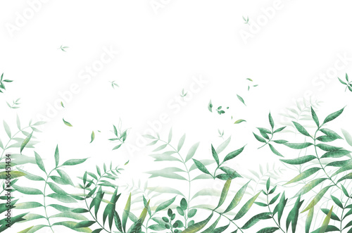 Bouquet border - green leaves. Leaf watercolor illustration. Watercolor seamless border. Floral illustration. Foliage pattern
