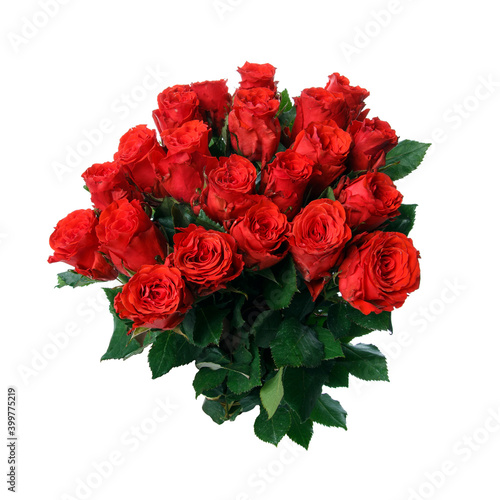 Bouquet of bright red roses isolated on a white background. Way in path.