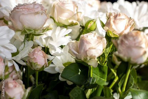 Bouquet of flowers. Flower. Roses and daisies. Petals. Close-up