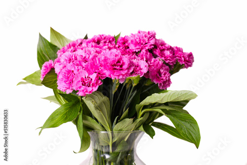 Bouquet of pink carnations in glass vase