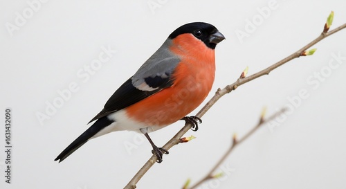 Bouvreuil �l�gant pose gracieusement branche printemps lumi�re douce. AI Generated