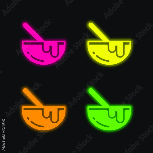 Bowl four color glowing neon vector icon