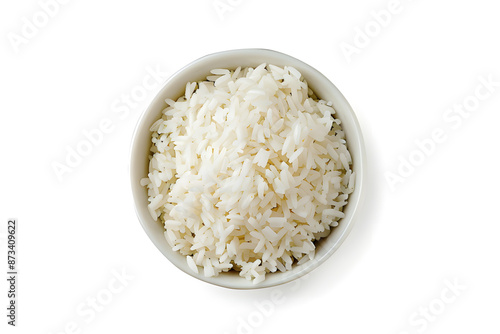 Bowl of boiled rice isolated on white background