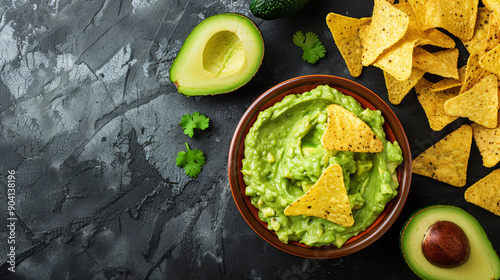 Bowl of creamy avocado dip with chips