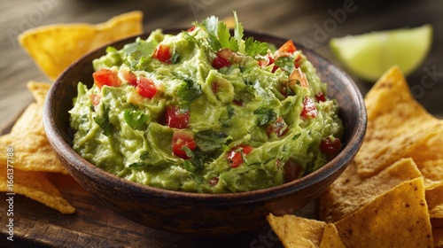Bowl of guacamole with tortilla chips