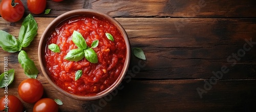 Bowl of Marinara Italian tomato sauce. with copy space image. Place for adding text or design