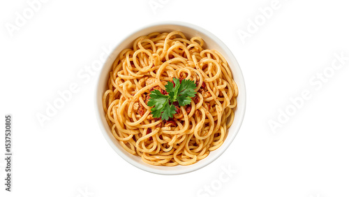 Bowl of Spaghetti with Parsley, Isolated on Transparent Background PNG