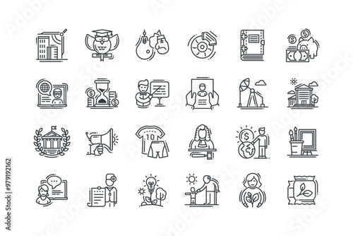 Boxing, Brake shoe, Classic books, Deposit insurance, set of icons for web design, vector illustration